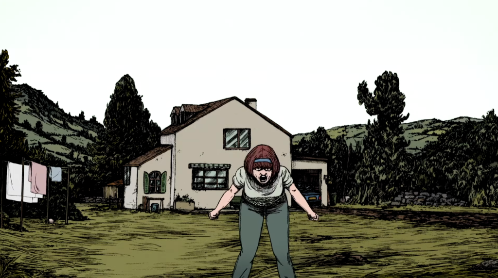 Ön planda kurumuş otların kapladığı, dalgalı bir arazi. Ortasında yere uzanmış, genç bir kadın. Yüzünü göremiyoruz. Baktığı yer, muhtemelen, uzaktaki ve ufuk çizgisindeki o eve doğru. Ama sanki bir taraftan da ahıra bakıyor gibi? Tam olarak emin olmak zor. Gerçi, olmamız da gerekmiyor. Buradaki mevzu, o yerin, o gidilmek istenen yerin, yani evin, ulaşılması güç bir mesafeye olan denkliği.